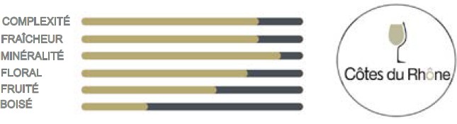 CÉPAGES:Grenache 35%, Roussane 35%, Clairette 15%, Bourboulenc 15%.
