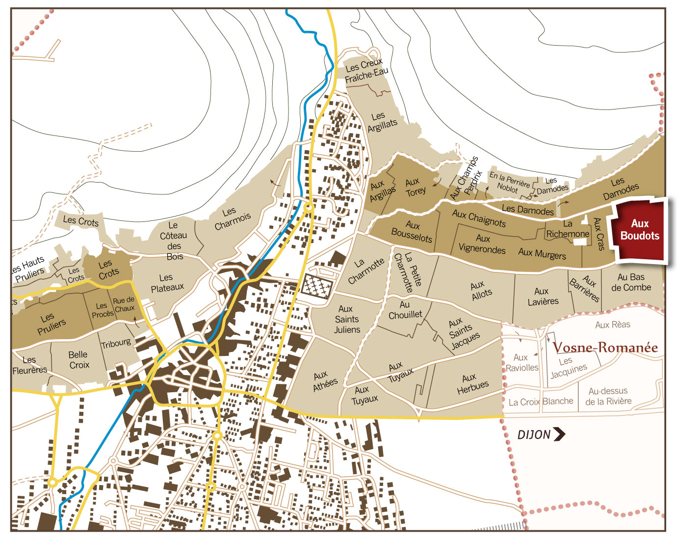 重新定義Nuits-Saint-Georges的細膩 這批酒單最動人的核心,其實落在Nuits-Saint-Georges。Aux Boudots位在產區最北端之一,緊鄰Vosne-Romanée,因此它向來被視為Nuits-Saint-Georges之中最帶有「Vosne氣質」的一塊一級園:既有結構,也有更細緻、更上揚的香氣線條。到了Leroy手中,這種邊界地塊的魅力會被拉得更清楚,酒不只深,還會有一種極少見的流動感。相較之下,Aux Allots與Au Bas de Combe雖然只是村莊級地塊,卻正好讓人看見Leroy最厲害的地方:即使不是一級園,仍能把Nuits-Saint-Georges本來的骨架、土壤感與深色果味整理得非常立體,不會只是「村莊酒」而已 ,而是足以讓人重新認識這個村的內在張力。
