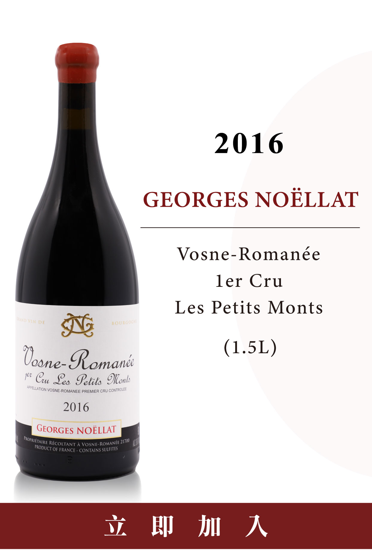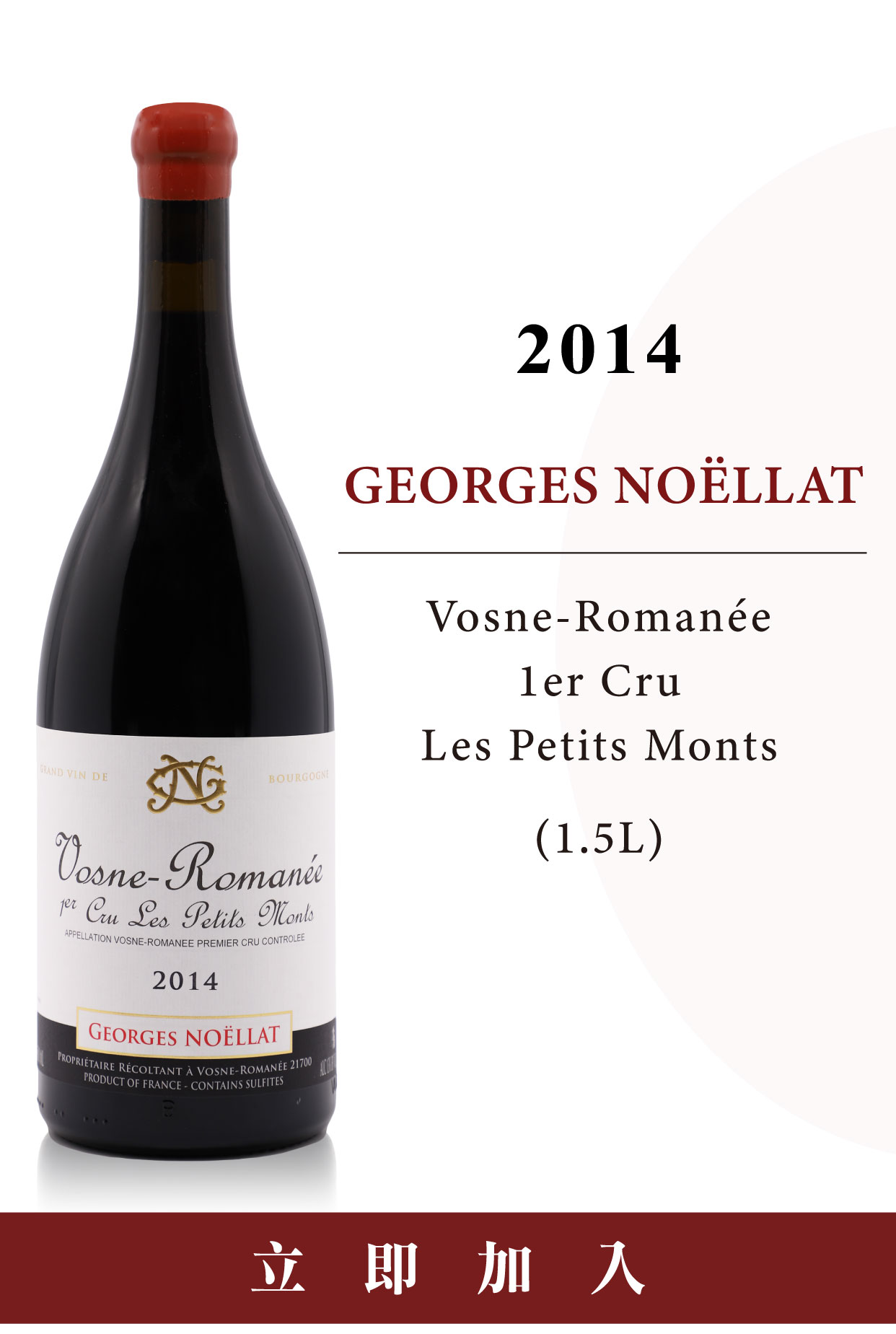 | 1 | 2015 Georges Noellat Nuits-Saint-Georges 1er Cru Aux Cras Magnum (1.5L) | --- | 16,000 【請洽客服】 | | 2 | 2015 Georges Noellat Nuits-Saint-Georges 1er Cru Les Boudots Magnum (1.5L) | --- | 15,000 【請洽客服】 | | 5 | 2015 Georges Noellat Vosne-Romanee 1er Cru Les Chaumes Magnum (1.5L) | JMIB:93 ★★★★ | 18,600 【請洽客服】 | | 4 | 2015 Georges Noellat Vosne-Romanee 1er Cru Les Beaux Monts Magnum (1.5L) | JMIB:94 ★★★★ | 22,000 【請洽客服】 | | 5 | 2015 Georges Noellat Vosne-Romanee 1er Cru Les Petits Monts Magnum (1.5L) | --- | 28,800 【請洽客服】 | |