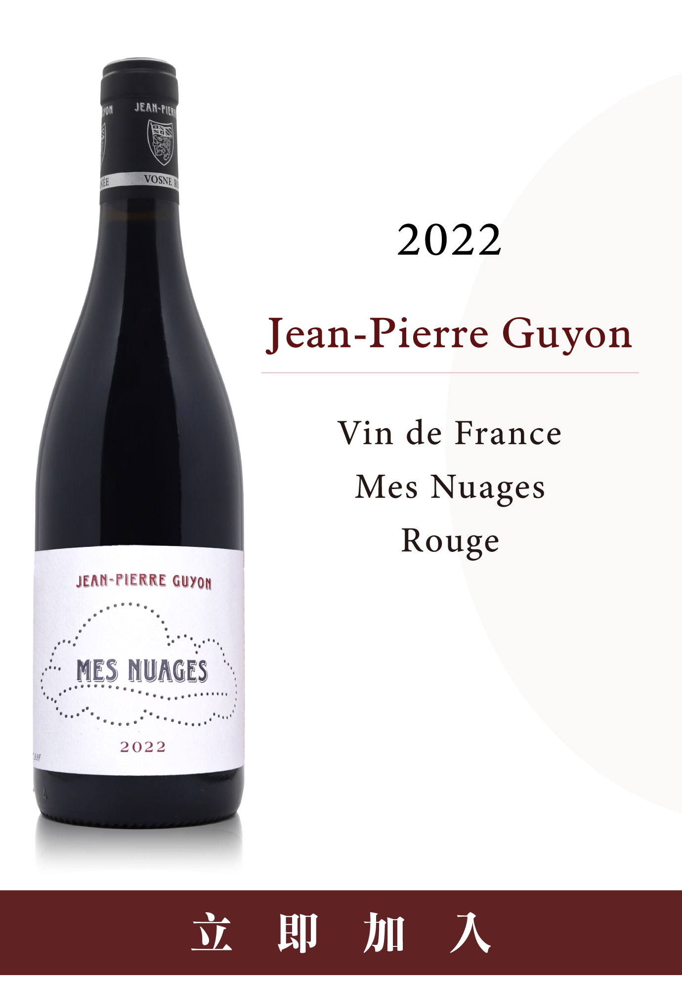 真正能讓酒迷致敬一位釀酒師的,從不是標籤上的Grand Cru,而是那瓶一入口便能辨認出靈魂的“簽名之作”。 那樣的特釀,絕非例行公事下的平庸之作,而是釀酒師賭上名譽的個人名片。這張名片,可能來自人生第一塊老藤的初心,可能源於將四塊一級園濃縮成一桶的偏執,也可能是對老藤殘喘的終極致敬。更有甚者,是釀酒師選擇放下產區枷鎖,只用這一瓶酒,便說盡了自己的審美與信念。如果你追求的不再是標籤上的名聲,而是釀酒師親筆簽名的靈魂,這五款酒就是你的終極答案。 把自己寫進酒裡的作品 Mes Nuages當一位釀酒師感嘆:「一為釀酒師一生大約只有45次機會」,這背後並非浪漫的詩意,而是對歲月殘酷的敬畏。在勃根地,年份是無法重來的單程票,任何一次細微的疏忽,都足以讓一整年的汗水化為烏有。Jean-Pierre Guyon帶著這份「不容出錯」的覺悟,在葡萄園管理與釀造細節中投入了近乎瘋狂的心力。在旁人眼中,那是令人屏息的偏執;對他而言,這卻是守護風土的唯一尊嚴。 Jean-Pierre Guyon (圖/天地人酒窖) 而“Mes Nuages-我的小雲朵”是Jean-Pierre Guyon把自己寫進酒裡的一款作品。這不是單一地塊的獨白,而是匯集所有地塊的拼圖:把不同村莊、不同坡向的碎片,揉合成他心中最完整的「Guyon風格」。2022是首發年份,因此更像是一份宣言:與其用風土定義他,不如讓他用選果、分揀、熟成與細節,定義自己。想要在最短時間讀懂Jean-Pierre Guyon的氣質與手法,Mes Nuages是最直接、也最迷人的入口。 此報價僅限活動期間 2026/04/17~2026/04/27 由於葡萄酒價易受極端氣候減產、國際運輸價格上漲以及市場供需變化影響,活動期限後請以客服人員回覆之實際報價為準。 |