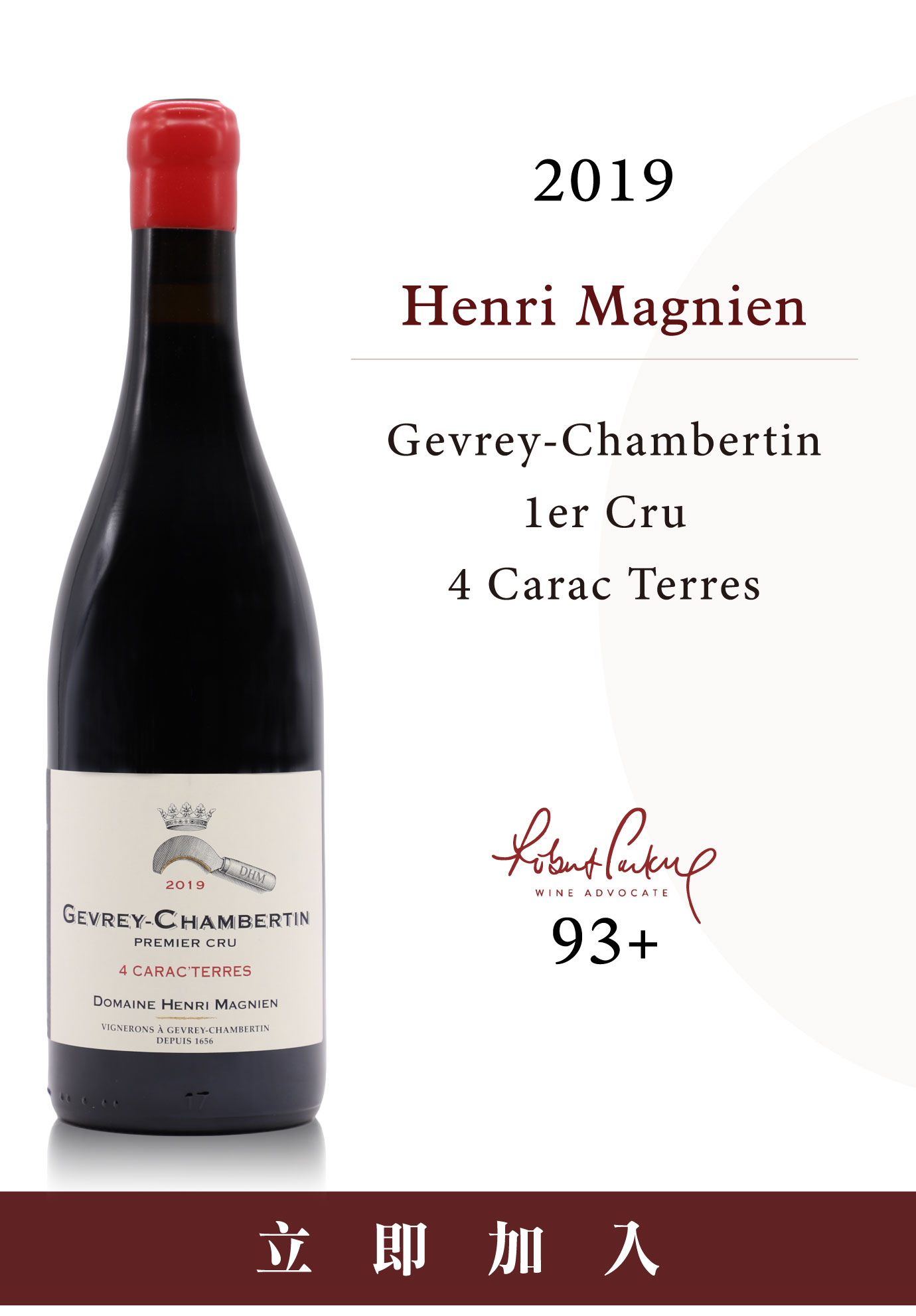 四位一體的力度自白 4 Carac TerresHenri Magnien的 "4 Carac Terres" 是一款具有強烈宣言意味的代表作。Charles Magnien不滿足於單一地塊的表現,而是大膽將Champeaux、Estournelles、Lavaux與Cazetiers這四塊Gevrey-Chambertin指標性一級園的精華匯入瓶中。這不僅是一次混釀的嘗試,更是他對這座村莊力度與層次感的深度解構。 Charles Magnien (圖/@domainehenrimagnien) 這款酒的產量極其稀少,每年通常僅能釀出一只特製的300L木桶。Charles選擇了一條近乎冒險的釀造之路:採取100%全梗發酵與100%全新橡木桶熟成。這種極限配置最能考驗一位釀酒師的功力,展現其對果實成熟度、香氣張力、骨架結構與木桶風味之間平衡點的精準掌控。 此報價僅限活動期間 2026/04/17~2026/04/27 由於葡萄酒價易受極端氣候減產、國際運輸價格上漲以及市場供需變化影響,活動期限後請以客服人員回覆之實際報價為準。 《Wine Advocate》:「來自莊園四個一級園的優選葡萄混釀,100% 帶梗釀造。散發出橙皮、牡丹花、異國香料和紫羅蘭的香氣,並在新的300升橡木桶中陳釀,略顯巧妙。這款酒的酒體屬於中等至飽滿,明亮而濃縮,帶有分層的核心,活潑的酸度和粉質結構的單寧。」William Kelley 2021.06.1 釀酒師留給世界的私藏告白 從Yann Durieux敲開岩石種下的家族記憶 ,到Jean-Pierre Guyon匯集風土碎片的靈魂拼圖;從Sylvain Pataille傳承百年的祖傳答卷,到Jérôme Galeyrand守護一世紀的老藤初心,以及 Charles Magnien 挑戰極致平衡的力度自白。 (圖/天地人酒窖) 這些特釀早已超越了標籤上的等級,它們是關於偏執、傳承、覺悟與自由的故事。當您拔起軟木塞,喝到的不再只是發酵的葡萄汁,而是一位釀酒師賭上名譽,試圖在殘酷歲月中留下的永恆瞬間。這不是市場上的安全牌,而是專為尋找「靈魂簽名」的藏家準備的終極答案。 |