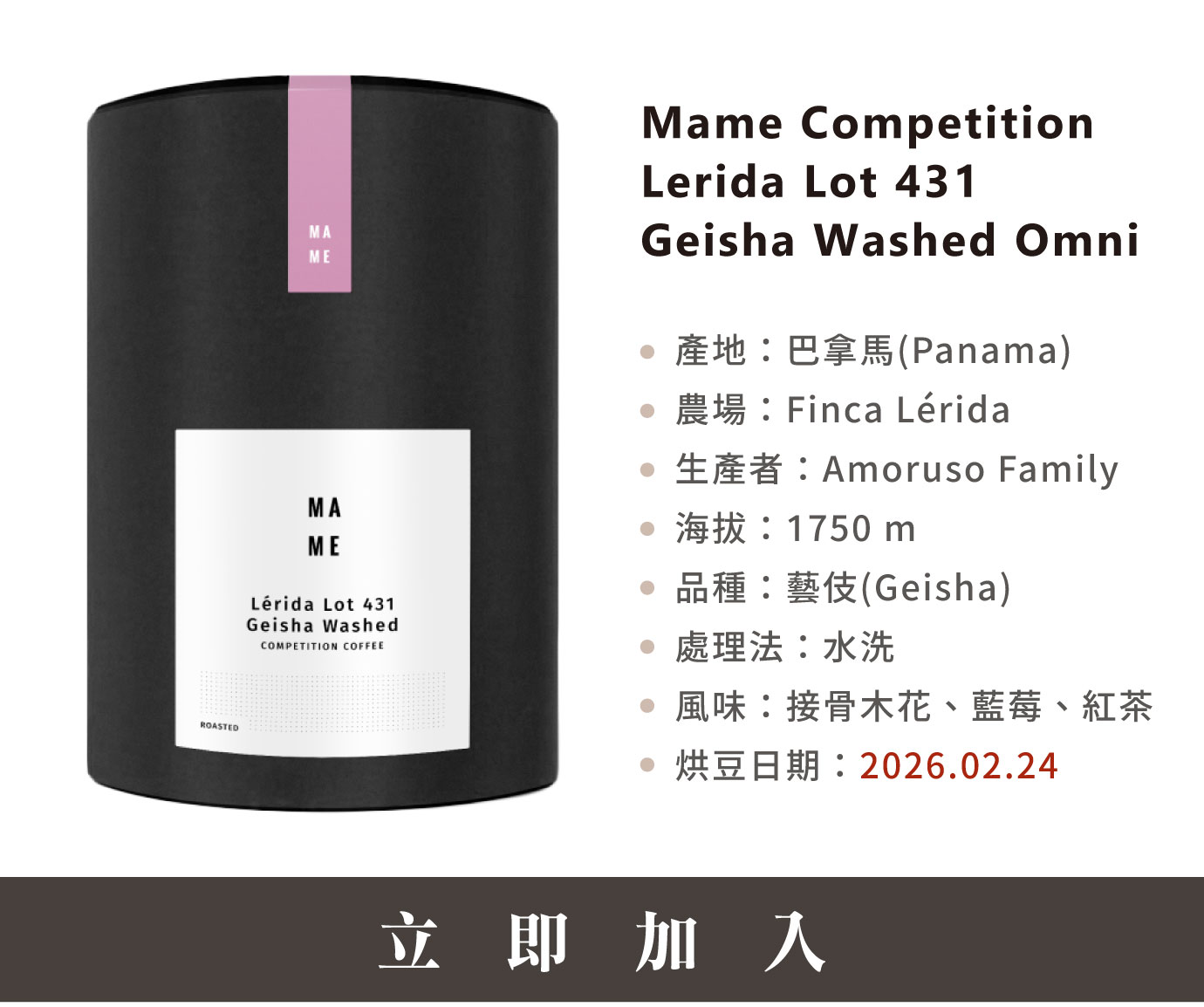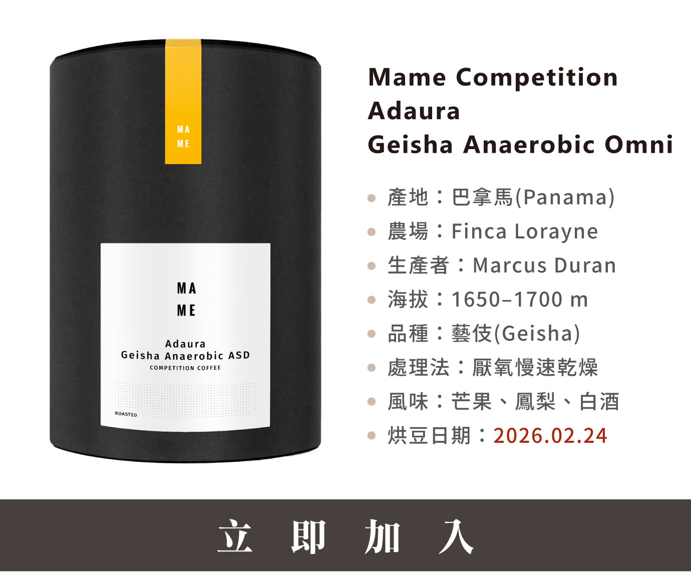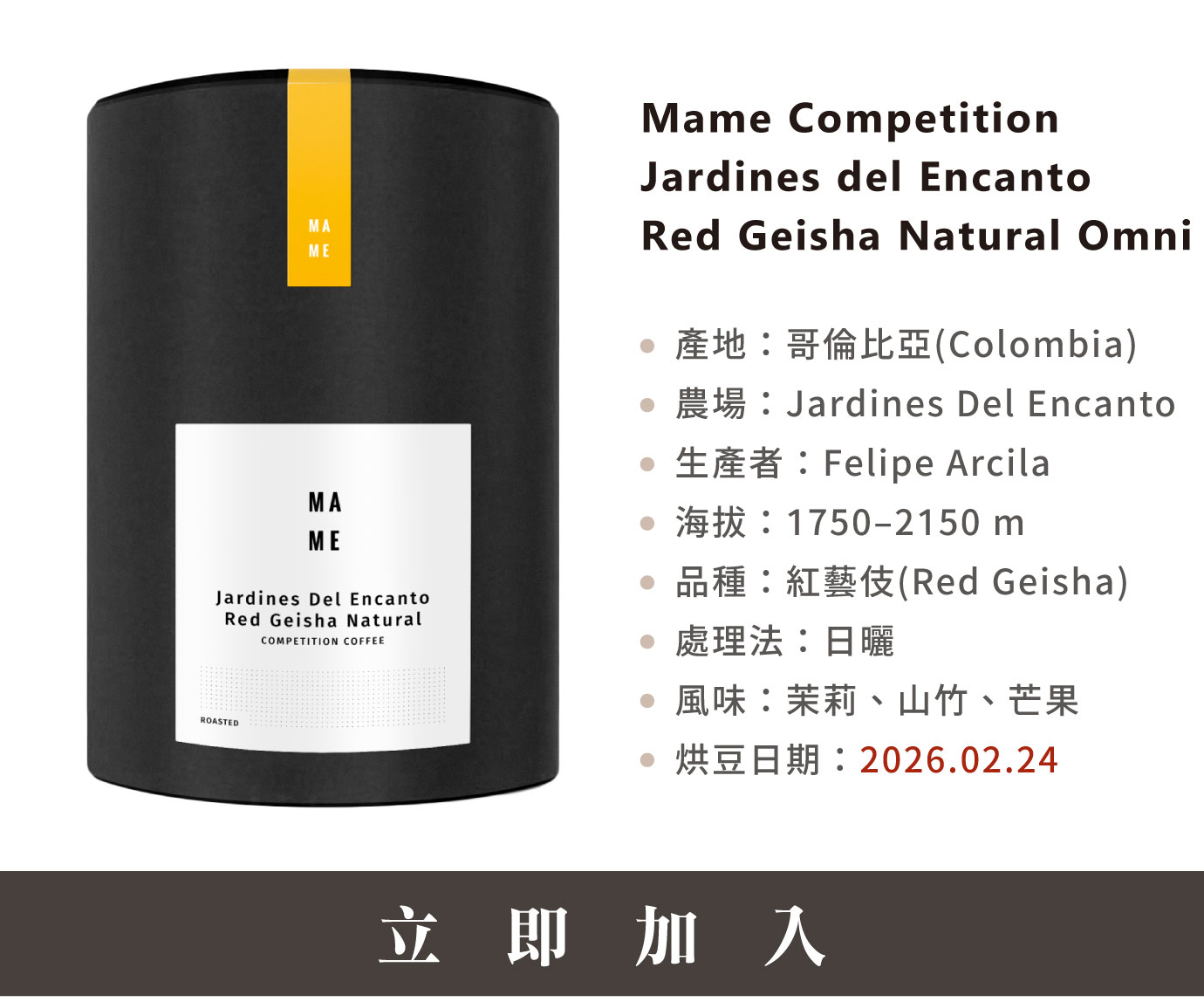 MAME Competition系列不僅是競賽級豆款的集結,更反映了頂尖莊園對風味細節近乎苛求的精準掌握。在追求極致純淨的道路上,這幾款豆子建立了清晰的風味門檻,讓品飲過程轉化為對當代精品咖啡工藝邊界的深刻理解。 延伸閱讀:純淨度的極限對抗|MAME Competition |