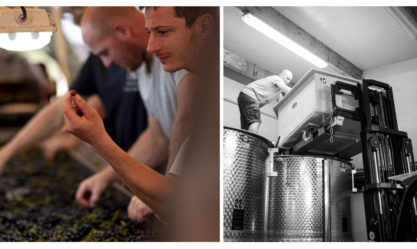 釀造工藝在Michel Noëllat的釀酒哲學中,每一年的採收都是一場與自然的深度對話。莊主Alain與女兒Sophie及Sébastien(Sophie的堂哥)三人針對當年份的氣候起伏與葡萄狀態,共同商討出最精準的釀造策略,將每一份細膩的耕耘轉化為忠於家族精神的佳釀。 Sébastien(左)與Sophie(右) (圖/winehog.org) 為了守護果實的純淨,所有葡萄皆採人工採收並經嚴格分選,利用小型容器運送以確保果粒完整、不受擠壓。紅葡萄在去梗後先經歷三天的低溫冷浸漬,隨後進入密封槽發酵,期間透過定期的淋汁與四至五次的壓帽工序,細膩地萃取出深邃的風味層次與單寧結構。最終,酒液會在法國橡木桶中靜待時光淬煉,以這款一級園而言,新桶比例控制在40%左右,經過15至18個月的陳釀,才能將風土的精華優雅裝瓶。 酒莊分選葡萄及密封槽發酵步驟過程 (圖/domaine-michel-noellat.com) 穿越時光的匠心結晶這瓶2023 Vosne-Romanée 1er Cru Les Suchots不僅僅是一件風土作品,更是Michel Noëllat家族三位核心成員Sébastien、Sophie與 Alain共同對自然的致敬。從三月的酒窖探訪中,我們看見了這間矗立在村口的地標酒莊,如何透過純手工的細膩分選、極其嚴謹的低溫浸漬,以及對新桶比例的精準拿捏,將Suchots的華麗與柔軟推向新的高度。 Michel Noëllat酒莊外觀 (圖/domaine-michel-noellat.com) 在勃根地的世界裡,名聲固然重要,但唯有這份對每一顆葡萄、每一道工序的極致堅持,才能在杯中化作那抹令人心醉的紫羅蘭幽香與絲絨口感。2023年份所展現出的平衡度,預示了它將在未來的十年、甚至二十年內,持續綻放出這塊傳奇一級園的耀眼光芒! |