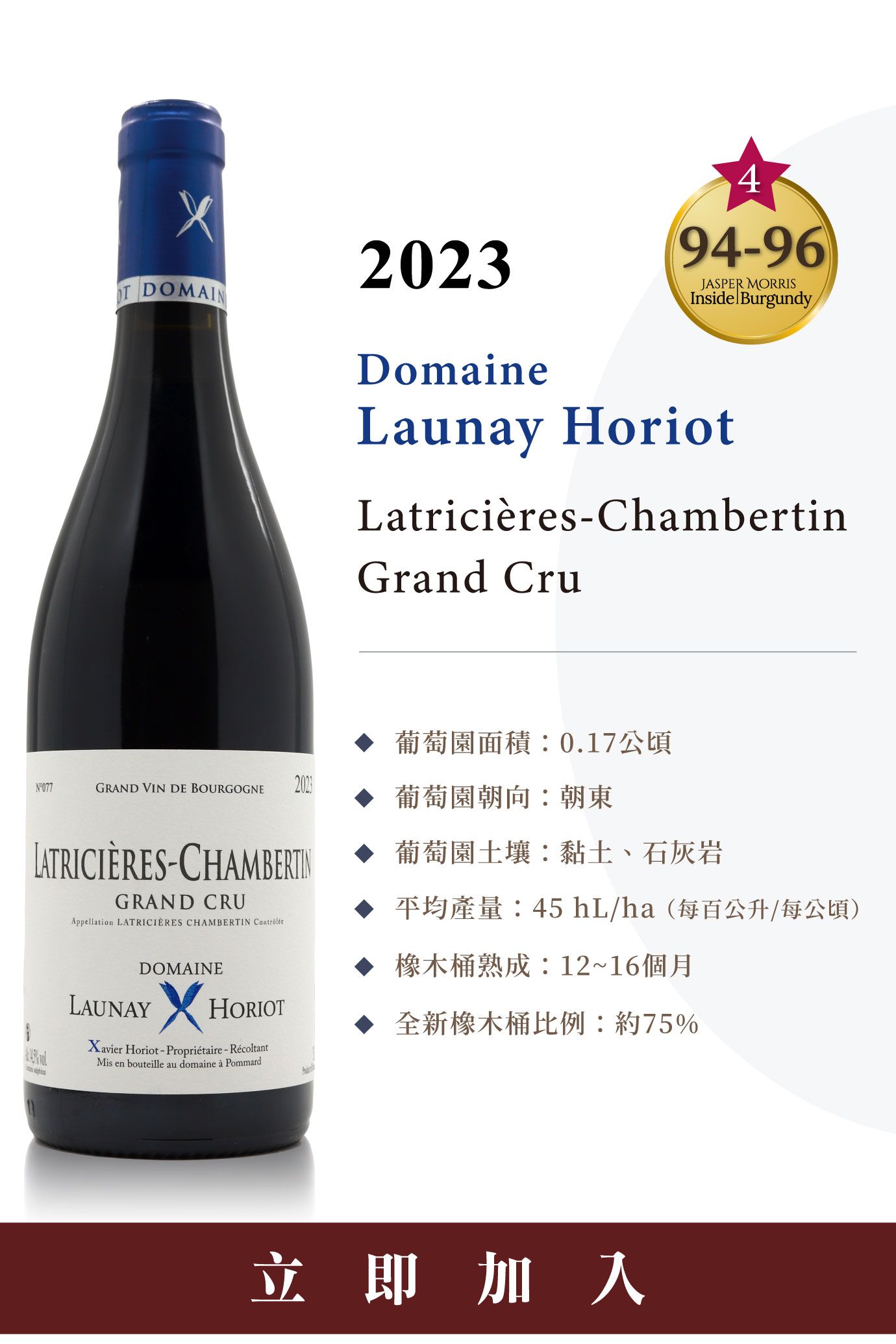 | 此報價僅限活動期間 2026/03/09~2026/03/19 由於葡萄酒價易受極端氣候減產、國際運輸價格上漲以及市場供需變化影響,活動期限後請以客服人員回覆之實際報價為準。 《Inside Burgundy》:「分批採收歷時數日。酒體呈現濃鬱的紫色。香氣馥鬱,散發著成熟覆盆子的芬芳,卻又不至於過於濃烈。入口活力四射,黑覆盆子般的果香飽滿而富有光澤,單寧緊緻細膩,餘韻悠長。口感多汁。」 此報價僅限活動期間 2026/03/09~2026/03/19 由於葡萄酒價易受極端氣候減產、國際運輸價格上漲以及市場供需變化影響,活動期限後請以客服人員回覆之實際報價為準。 《Inside Burgundy》:「酒體呈均勻的深紫色。香氣略遜於村級Perrières,但層次感依然濃鬱。果香與Perrières相似,但更為精緻,並帶有黑櫻桃的香氣。酸度適宜,單寧柔順,餘韻悠長。」 此報價僅限活動期間 2026/03/09~2026/03/19 由於葡萄酒價易受極端氣候減產、國際運輸價格上漲以及市場供需變化影響,活動期限後請以客服人員回覆之實際報價為準。 《Inside Burgundy》:「明亮的紫紅色。香氣濃鬱內斂。口感優雅,覆盆子和黑櫻桃的果香充滿活力,酸度平衡良好,清爽的口感與葡萄的成熟度相得益彰,餘味悠長。已完全成熟。」 從命運邊緣搶回的 兩塊特級園 除了在Pommard扎根之外,酒莊在夜丘還有兩塊特級園:Chambertin 與Latricières-Chambertin。這2塊差點被賣出的珍貴葡萄園,最終在Xavier Horiot歷經11年訴訟後,得以繼續留在酒莊名下。如今每一瓶酒,都是從命運邊緣搶回的特級園風土。 此報價僅限活動期間 2026/03/09~2026/03/19 由於葡萄酒價易受極端氣候減產、國際運輸價格上漲以及市場供需變化影響,活動期限後請以客服人員回覆之實際報價為準。 《Inside Burgundy》:「濃鬱明亮的紫色。香氣展現出更佳平衡的成熟度,再次出現深色莓果的香氣,但整體清新怡人,結構也更加緊實。覆盆子的香氣比黑櫻桃更為突出。餘韻略帶鹹味。口感層次豐富,果香品質優良。適飲期為2035年至2045年。」 此報價僅限活動期間 2026/03/09~2026/03/19 由於葡萄酒價易受極端氣候減產、國際運輸價格上漲以及市場供需變化影響,活動期限後請以客服人員回覆之實際報價為準。 《Inside Burgundy》:「又是一款色澤呈現濃鬱的紫色的酒款,酒體中心呈現深邃的黑色。香氣需要時間慢慢散發,入口後,果味展現出更成熟的風味,收尾時結構略顯柔和。餘韻悠長,黑櫻桃風味更為突出。莫雷洛櫻桃(Morello Cherry)的香氣尤為明顯。適飲期為2033-2040年。」 對已經熟悉勃根地名莊節奏的藏家而言,Launay Horiot是一個少見仍停留在風土已經站在Pommard一級園與Chambertin特級園的金字塔尖,釀造穩定度與國際評價也逐年攀升,價格與知名度卻仍被市場低估的酒莊。2023年陽光慷慨、產量卻刻意收斂,這些從命運邊緣搶回的Pommard與特級園,未來在酒窖中會占據哪個位置,也許現在就已經有了答案。 |