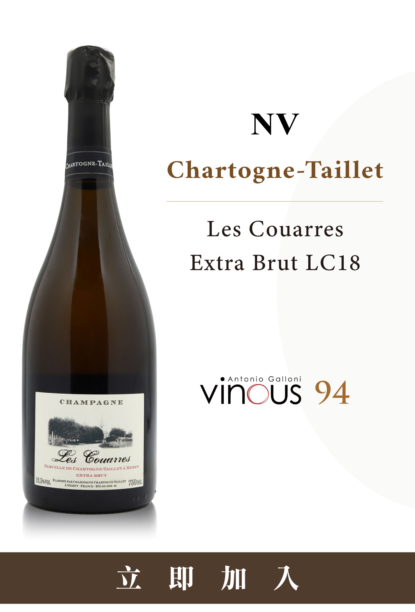 | 此報價僅限活動期間 2026/03/11~2026/03/21 由於葡萄酒價易受極端氣候減產、國際運輸價格上漲以及市場供需變化影響,活動期限後請以客服人員回覆之實際報價為準。 《Vinous》:「2018年份Extra-Brut “Les Couarres”是一款風格濃郁且充滿力量的香檳。60% PinotNoir與40% Chardonnay的調配在此展現出極佳的協調性。 這是一款具份量與存在感的酒,而Les Couarres最令人印象深刻的,是它所展現出的沉穩與從容。白花、櫻桃白蘭地(kirsch)、香料、威廉梨(PoireWilliam)與碎石礦物氣息交織出異國風情。我尤其欣賞這款酒所呈現的精準度,整體表現十分到位。殘糖為每公升4.5克。 Alexandre Chartogne在這個略顯多變的年份中,釀出了一組表現出色的2018年份作品。我最欣賞這批新酒之處,在於對產地與品種的鮮明表達,尤其是在這樣炎熱的年份中更顯難得。這些香檳在橡木桶中發酵與熟成,因此帶有些許木質影響,但橡木所帶來的是質地與層次,而非掩蓋酒款本身的平衡感。」——Antonio Galloni |