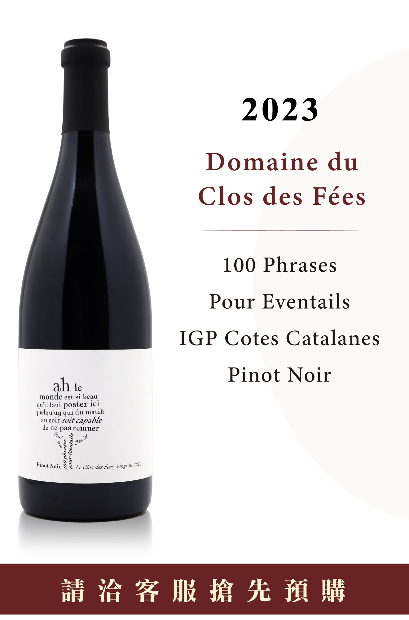 這款100 Phrases Pour Eventails的聯名鉅作,正是這段跨越產區框架、長達10年的友誼投影。光線可以輕易穿透這明亮的寶石紅酒液,成熟紅果中帶著草本甚至是根系的複雜氣息,每一滴都是對這場「不可能之約」的致敬。