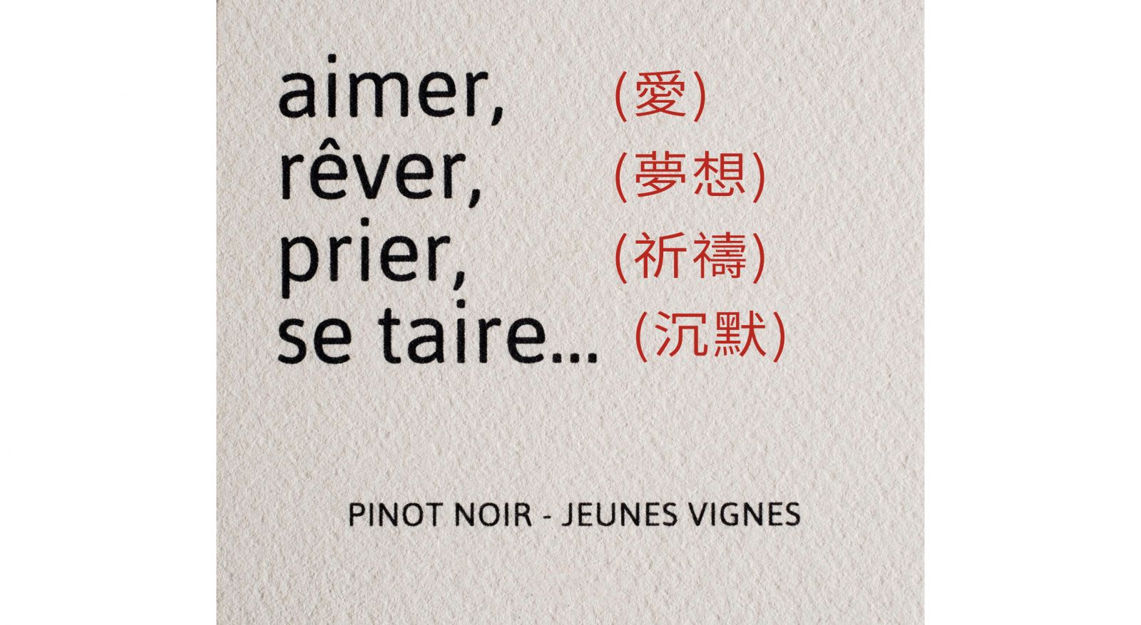 那時的Bizeul正經歷整地工程被大水摧毀三次的絕望,他在書信中向這位勃根地傳奇傾訴對這塊地塊的恐懼與希望。Aimer Rever Prier se Taire(愛、夢、禱、默)正是這段長達11年執念的初衷,也是在兩人信件往返初期,Bizeul在那孤獨的北向坡上對土地的承諾。