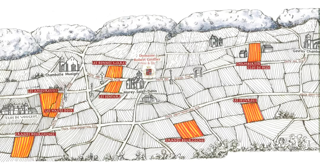 Domaine Robert Groffier Père & Fils位於勃根地夜丘的Morey-Saint-Denis,主要葡萄園分布在Chambolle-Musigny與Gevrey-Chambertin,共有7公頃的葡萄園,包括Bonnes-Mares、Chambertin Clos-de-Bèze等,更值得一提的是,酒莊同時也是Les Amoureuses(愛侶園) 的大地主,堪稱這片夢幻園地的真正守護者。