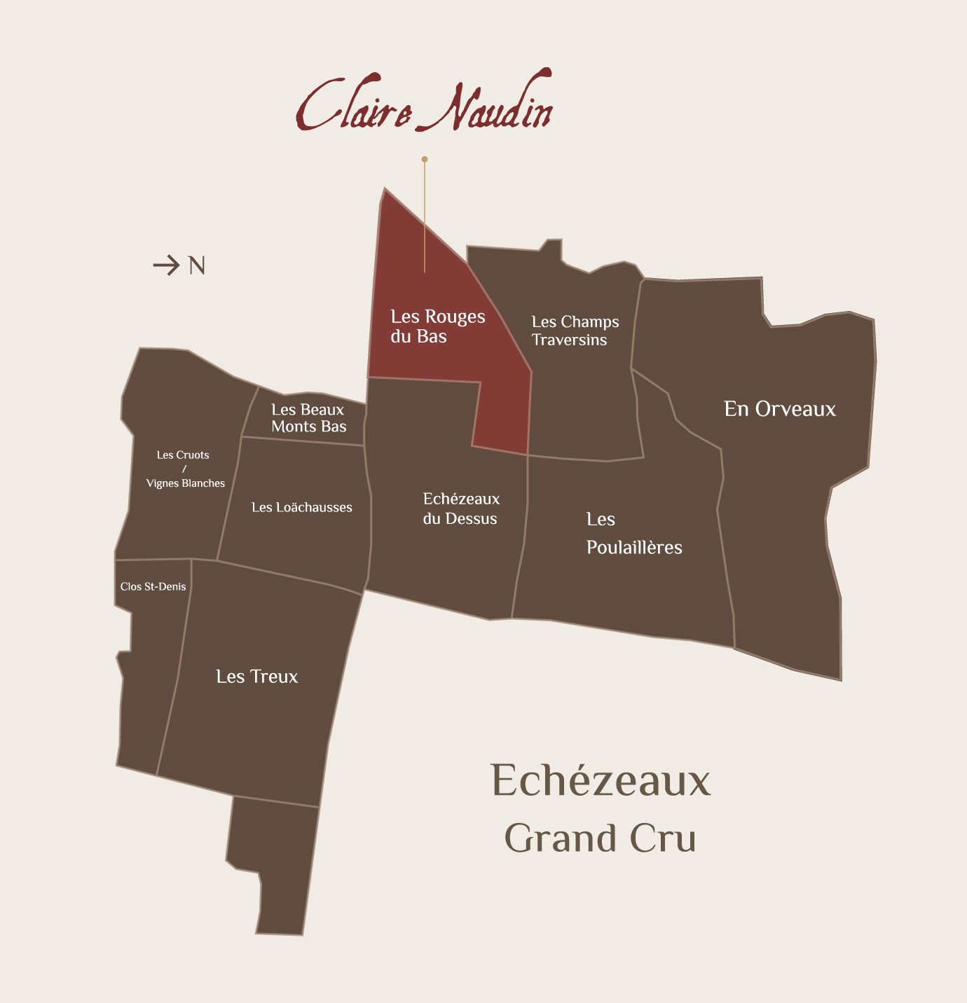 |巔峰之作的夢幻逸品 Echezeaux Grand Cru這是酒莊唯一的特級園,也是Claire證明實力的終極舞台。然而,這段傳奇的起點,其實源自一個充滿戲劇性的意外收穫。 Claire曾與我們分享,這個故事要回溯到1999年。當時這塊位於Les Rouges du Bas的 Echezeaux精華地塊釋出時,無數頂尖的Vosne-Romanée莊主都虎視眈眈想將其納入版圖。 但在勃根地,土地買賣從來不只是財力的較量,更是一場關於「資格」的評選,必須經由專業仲介公司嚴格審核買家的潛力與願景。那年,年僅30歲、資歷尚淺的Claire抱著試試看的心情寄出了申請信,心中其實並不抱任何期待。沒想到,某天她竟收到仲介公司的回信,信中只有一行簡短卻足以改變她一生、甚至改變勃根地版圖的文字:「恭喜妳,妳購得了 Echezeaux 的這片田地。」 Claire購入的Echezeaux Grand Cru地塊位置 (圖/天地人酒窖) 這份意外的禮物,開啟了她與這片神聖風土的對話。時至今日,這款酒成為了她旗下唯一使用 100%全新法國橡木桶陳年的作品,唯有Echezeaux宏大的結構與紮實單寧,能完美消化新桶賦予的力量,綻放出令人屏息的平衡感。 此報價僅限活動期間 2026/02/03~ 2026/02/13 由於葡萄酒價易受極端氣候減產、國際運輸價格上漲以及市場供需變化影響,活動期限後請以客服人員回覆之實際報價為準。 | 編號 | 品項 | 評分 | 價格 |