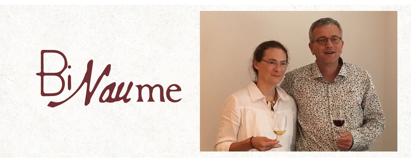 2016年的嚴重霜害,幾乎摧毀了Claire Naudin的大部分收成。然而,這場災難卻意外地開啟了她與丈夫Jean-Yves Bizot的全新計畫"BiNaume"。名稱中的“bi”取自 Bizot,“naume”來自Naudin,同時與法文“binôme” (指「雙人組、搭檔」)同音,象徵兩人攜手、融合彼此風格的嘗試。 (圖/天地人酒窖) 葡萄來源與釀造理念失去了AOC的框架與限制,Naudin反而獲得更大的自由,得以探索更具個性、跳脫傳統規範的釀酒方式。BiNaume的葡萄來自Allier地區。這裡的葡萄由Naudin親自採收後,運回酒莊進行釀造,釀造過程極為簡單純粹:不澄清、不過濾,僅在裝瓶時加入極少量二氧化硫,完整展現酒款的特徵與張力,最終僅推出兩款酒: