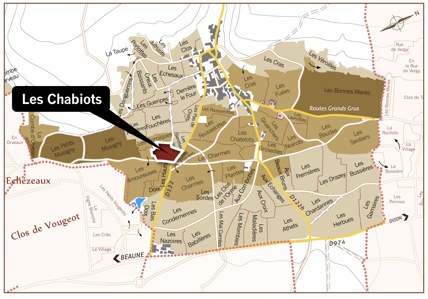 通往Musigny優雅世界的稀有門票 Les Chabiots Les Chabiots是Lignier的靈魂地塊, 是真正懂Hubert Lignier的老饕絕不會錯過的酒款。葡萄園緊鄰傳奇特級園Musigny ,地緣優勢使其完整承襲了那種令人屏息的純淨與優雅。