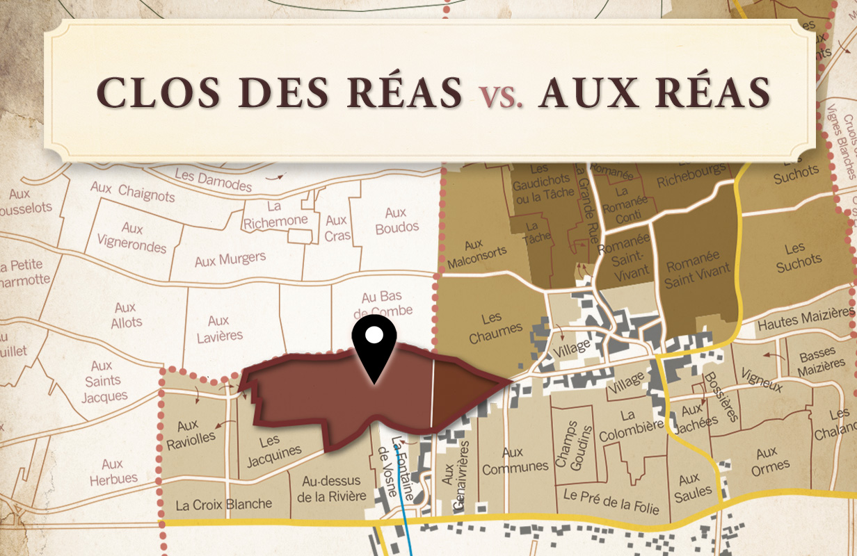 在Vosne-Romanée的地圖上,Clos des Réas與Aux Réas僅有一牆之隔,名字更是讓人傻傻分不清。但對資深勃根地酒友來說,這道牆區隔的不只是等級,更是Gros家族傳承百年的執著與驕傲。