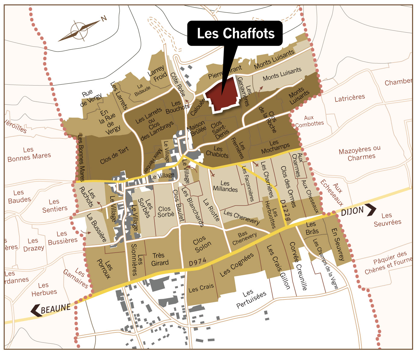 在夜丘的版圖中,Morey-Saint-Denis始終扮演著一種神祕而迷人的角色。它被公認為是Gevrey-Chambertin的「厚度」與Chambolle-Musigny的「精緻」之間的一座橋樑。它不像前者那般充滿野性的肌肉,也不若後者那樣輕盈如絲;它在兩者之間,找到了一種獨特的、具備結構卻不失優雅的平衡。 Morey-Saint-Denis產區 (圖/vinovest.co) 多數地塊展現的是果實的豐盈,而Les Chaffots卻執著於將力量內斂成精準的輪廓;它比鄰近的地塊更往坡上走了一步,正是這一步,讓它脫離了平凡的甜美,擁有了更具爆發力的酸度與礦物骨架。 從枯草穀倉到斷頭台的神祕地誌Les Chaffots的命名也為這塊名園增添了一抹引人入勝的神祕色彩。在古法語中,這個地名最早指向農民存放乾草的穀倉,反映出這片高坡地在尚未開墾為葡萄園前的荒牧景象。然而,語言學家也指出其名稱與 "Echaffaud"(絞刑架)有著幽微的聯繫,暗示這裡在數百年前,或許曾是執行極刑的地點。 這種從平凡勞作到肅穆歷史的轉變,恰恰呼應了這塊土地的性格:它不只有著豐饒的果實,更具備一種冷峻、深刻且具備權威感的層次。 海拔與岩石的對話葡萄園面積僅2.6公頃的Les Chaffots矗立在特級園Clos Saint-Denis頂端,以海拔330公尺的高度俯瞰全村。而高海拔帶來了更為顯著的晝夜溫差。白天的陽光確保了果實的成熟與色澤,而夜晚的高坡冷涼則延緩了成熟過程,精準地鎖住了Pinot Noir最珍貴的鮮亮酸度。 Les Chaffots地圖位置 (圖/天地人酒窖) 這裡地質構造由堅硬的石灰岩岩床構成,表面僅覆蓋一層極薄的土層。這種多石且貧瘠的特性,配合陡峭坡度帶來的卓越排水性,營造出一個「壓力環境」:葡萄藤在此必須深入岩縫尋找水源,自然抑制了過度的生長活力。在低產量的環境下,每一顆葡萄都凝聚了極高的風味複雜度,這是成就其頂尖品質的物質基礎。 如何挑選Les Chaffots在挑選Les Chaffots時,酒莊的釀造哲學決定了這塊高海拔風土如何被詮釋。這塊地僅有2.6 公頃,雖然產量稀少,但Hubert Lignier、Mark Haisma與Michel Magnien這三位生產者,分別代表了傳統重量級、新派車庫精釀與生物動力法的不同面向。 |
