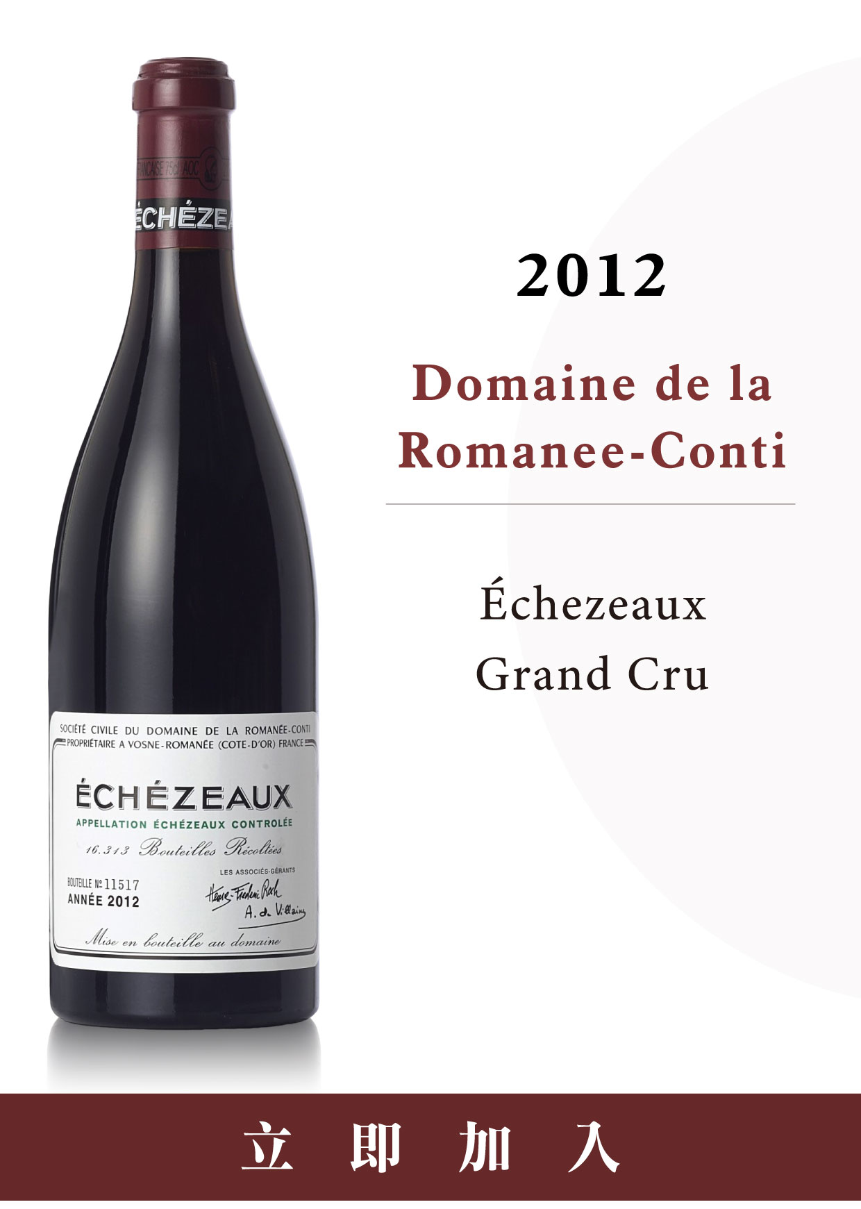 | 5 | 2004 Emmanuel Rouget Echezeaux Grand Cru (0.75L) | 【立即加入】 | | 6 | 2006 Emmanuel Rouget Echezeaux Grand Cru (0.75L) | 【立即加入】 | | 7 | 2016 George Jayer Par Emmanuel Rouget Echezeaux Grand Cru (0.75L) | 【立即加入】 | | 8 | 2016 Lucien Le Moine Echezeaux Grand Cru (0.75L) | 【立即加入】 | | 9 | 2018 Domaine Mongeard-Mugneret Echezeaux Grand Cru (0.75L) | 【立即加入】 | |