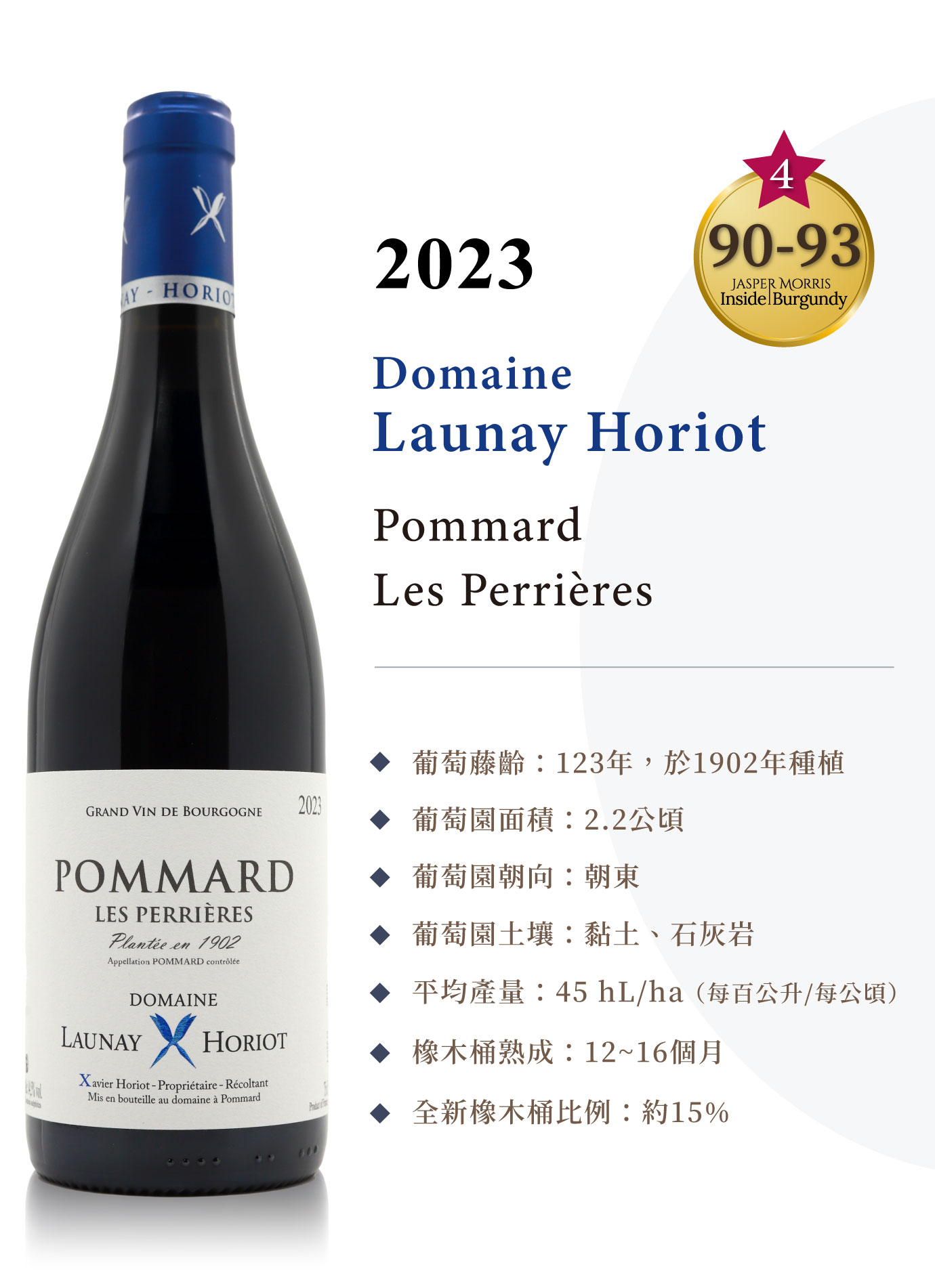Who is Xavier Horiot?現任莊主Xavier Horiot本來與葡萄酒世界幾乎毫無交集,曾在法國空軍擔任戰機飛行員長達18年,其後又投身軟體工程領域,原本並無意回鄉接掌酒莊。 曾擔任飛行員的Xavier Horiot莊主 (圖/Launay Horiot酒莊提供) 外祖父Raymond Launay在過世前,已立下心願,要將酒莊留給女兒與外孫Xavier,盼家族風土得以延續;直到繼承安排塵埃落定,他才驚覺女兒只打算把葡萄園全部出售。這個決定與他一生守護的心血背道而馳,卻在法國繼承法的框架下難以推翻,只能在彌留之際把最後的請託交給Xavier。 莊主&Pommard葡萄園 (圖/pearlofburgundy.com) 應承這份請託,Xavier Horiot與姨母展開了長達11年的繼承訴訟。直到2011年,法院終於作出對他有利的裁決,阻止酒莊被整體賣出的命運,並從家族原本約11.5公頃的葡萄園中,保住約4公頃最核心的地塊,其中便包含珍貴的Latricières-Chambertin和Chambertin特級園,成為Launay Horiot今日得以重生的風土基石。 重新定義Pommard:力量與優雅並存在Xavier看來,要讓Pommard的力量感與優雅並存,關鍵不在把酒做得更厚重,而是在果實成熟與釀造細節之間找到平衡。Domaine Launay Horiot以低產老藤與一級園地塊為核心,嚴格篩選葡萄,在發酵前經過6~8天的冷浸漬,並避免過度萃取。陳釀階段則會依照各地塊風格調整新橡木桶比例,讓紅色果香與礦物感成為主調,而橡木只負責勾勒結構。 酒莊釀造酒款使用的橡木桶 (圖/Wine Culture Singapore facebook) 2023酒款裡呈現的,是線條緊緻、香氣通透、單寧細膩的Pommard,顛覆了傳統對這個村莊「厚實而粗獷」的既定印象。 酒款介紹中,提及的葡萄園位置 (圖/launay-horiot.com) |