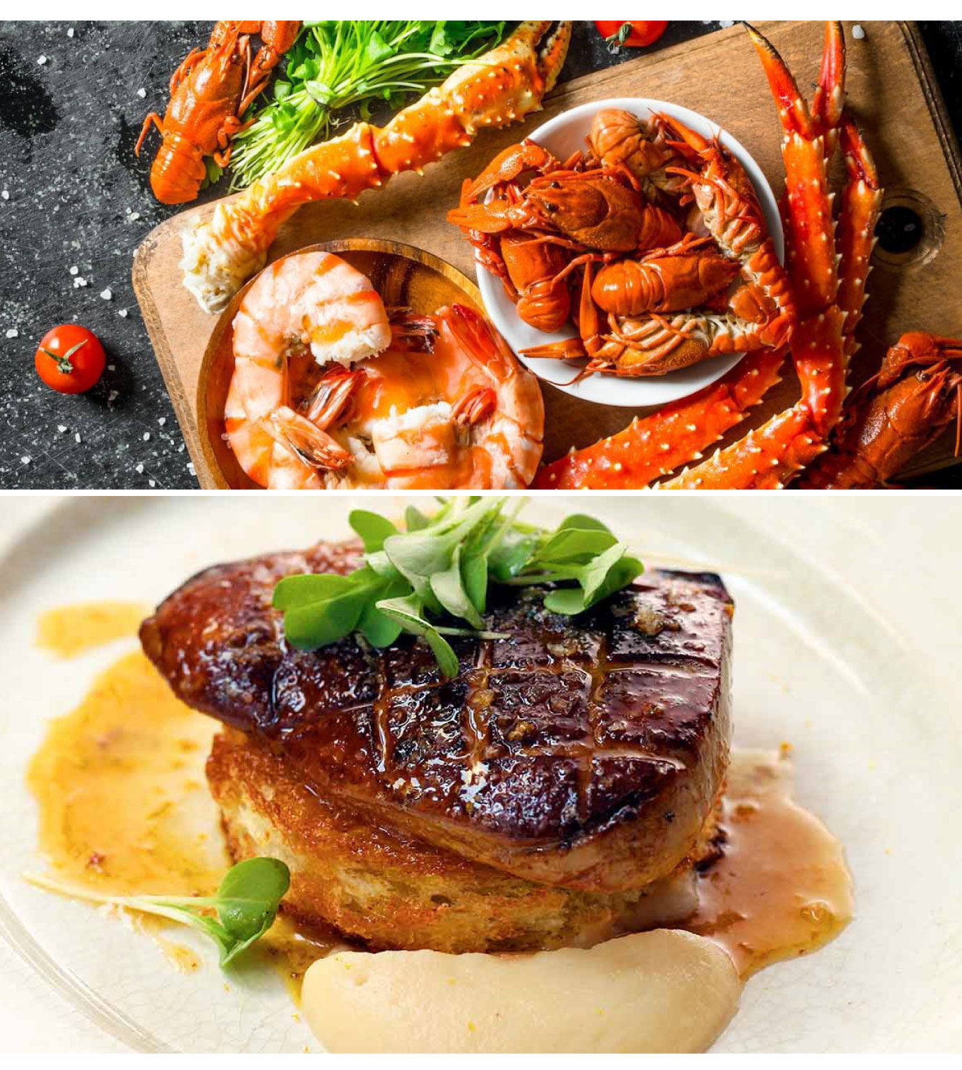 當料理以白醬為基底 時,Meursault圓潤的酒體與悠長而優雅的酸度,能有效平衡醬汁的濃郁感,使整體風味更顯立體。以甲殼類海鮮為例,爽脆的口感與Meursault所展現的活潑張力與柔順平衡形成對應;也能與藍紋起司或鵝肝 等風味強度較高、質地濃厚的食材達成和諧。