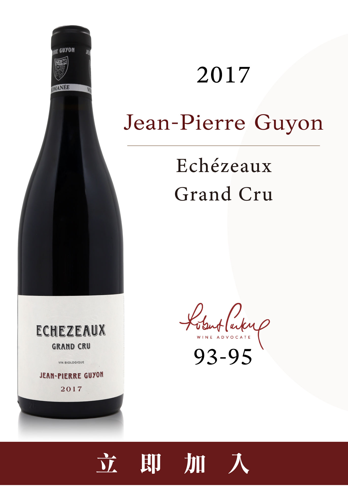當2018年Echezeaux奪下Jasper Morris(JMIB)五星滿分評價,Jean-Pierre Guyon一躍成為勃根地藏家爭相尋覓的頂級標竿時,許多人驚嘆於它的「突然崛起」。然而,對於深耕勃根地的藏家而言,這份榮耀絕非偶然,而是莊主Jean-Pierre Guyon二十多年來近乎偏執的「完美主義」積累。 輝煌背後的漫長積累這段成名之路,是由一系列大刀闊斧且目標明確的改革交織而成。早在2000年,Jean-Pierre Guyon便展現前瞻視野,全面啟動有機耕作並摒棄化學干預,最終於2012年正式取得有機認證,確保葡萄藤擁有最純淨的原始活力。與此同時,酒莊在釀造工藝上也於2012年確立了明確的轉向:以高比例整串發酵、低硫、長時間浸漬與溫和壓榨為核心,致力於萃取最純粹的風土靈魂。 Jean-Pierre Guyon親自修剪葡萄藤 (圖/jeanpierreguyonvosneromanee instagram) 即便已步入頂尖之列,Jean-Pierre仍未停止腳步,2020年葡萄園改採弧形整枝(Arch Training)以優化通風與光合作用,2021年導入極致精準的Tri en Nuage(雲分揀)技術去除粗梗的同時篩選出完美果實,更在2023年全面採用Double Aging(雙重陳釀)工藝,將酒體的層次感與細膩度推向新高度。 弧形整枝(左圖) 與篩選台上去除葡萄粗梗(右圖) (圖/Domaine Guyon提供) 酒莊雙重陳釀另一階段使用的砂岩桶 (圖/Domaine Guyon提供) 正是這些跨越二十載、持續不斷的工藝精進,成就了今日Jean-Pierre Guyon酒款中那份令人屏息的純淨與優雅。 略過等待直達適飲在酒莊名聲大噪、產量卻日益稀缺的當下,回頭尋找Back Vintage的意義,首先在於親自見證工藝進化的脈絡。2015與2017年份正處於Guyon改革的中期,當時其標誌性的全梗發酵與低硫技法已然成熟,是理解酒莊風格演變最珍貴的感官標本。 此外,收藏老年份能讓您直接略過勃根地特級園與一級園動輒十年的漫長等待期。本次釋出的佳釀已完美褪去青澀,正展露出紫羅蘭、複雜的香氣與絲滑如緞的熟美單寧,邁入展現風土層次的黃金適飲期。 2015 Domaine Guyon酒標樣式 (圖/wine-searcher.com) 最重要的是,隨著2018年後全球藏家對Guyon的狂熱追捧,未來新年份的價格勢必愈發難以企及,此時入手狀態完美的2015與2017年份,不僅是跳過溢價的捷徑,更是資深藏家佈局酒窖最理性的選擇。 |