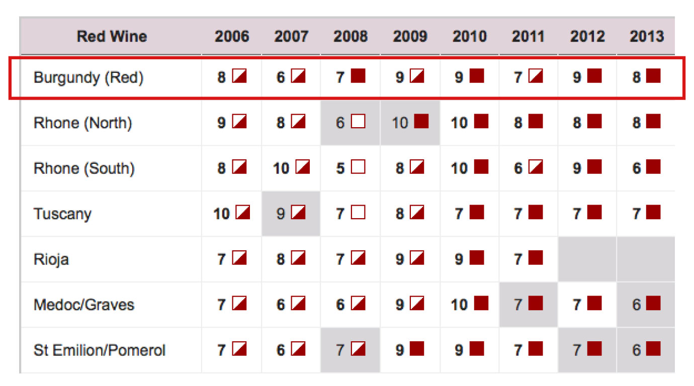 在勃根地,真正危險的,從來不是年份不夠偉大,而是市場把所有不夠濃、不夠熱、不夠張揚的年份,草率地貼上「弱年份」的標籤。對只看年份表的人而言,那是避開的理由;但對真正理解風土、理解酒莊釀造理念、也理解Pinot Noir本質的人而言,那些所謂的「非典型年份」,往往反而更誠實,也更接近風土本身。 好年份、弱年份的定義是什麼?事實上,在勃根地並沒有任何官方法定的「弱年份」或「好年份」分類。BIVB(勃根地公會)一直強調:勃根地是高度依賴年份的產區,而且每個年份都有自己的個性;如今市場慣用的「好年」「弱年」,其實是根據天候、成熟度、病害壓力、整體均質性與後續開瓶表現,從 BIVB年份報告、Decanter年份指南與Jancis Robinson的年份圖表中,慢慢累積出來的實務語言。 (圖/decanter.com) 換言之,所謂好年份,通常代表成熟度整齊、糖酸平衡佳、失手率低;所謂弱年份,往往是成熟度不足、雨水稀釋、病害壓力高,或酒體結構過度仰賴酸度而非果味來支撐。 那些年份是被市場誤判的“非典型年份” |1990年代1992年:量多、柔軟,但骨架偏弱1992年普遍被認為產量不小,但整體酒體偏輕。多數酒款不是難喝,而是缺乏足夠的單寧骨架與萃取深度。這類年份往往不特別討好收藏市場,因為陳年支撐力相對有限。但若出自細節掌握較好的酒莊,仍可能保有柔和、順口、早飲迷人的一面。 |2000年代2000年:柔和、早飲、分化明顯的一年2000年在勃根地普遍不被視為真正的「大年」,因為採收期曾遭遇降雨與腐敗壓力,整體成熟度與均質性不算特別理想。 但這不代表2000年沒有價值。Jancis Robinson 也指出,最好的2000紅酒雖不特別濃縮,卻能在短到中期提供相當愉悅、直接的飲用樂趣。因此,2000年更適合被理解為一個結構不宏大、陳年期有限,但在優秀酒莊手中仍有優異表現。這不是最值得重倉收藏的年份,卻可能是很迷人的早中期適飲年份。 2004年:最具爭議的年份之一,不能一概而論2004年是近代勃根地最容易引發分歧的年份之一。BIVB當年的官方描述其實相對正面,認為紅酒較2003年更具Pinot Noir的傳統細緻感,平衡、優雅且有魅力。 但市場後續對2004紅酒最大的疑慮,集中在部分酒款出現的草本、青感與所謂瓢蟲味(Ladybug)爭議。因此,2004年更精準的理解應是:白酒名聲普遍優於紅酒;紅酒則高度分化,酒莊選擇比年份標籤更重要。 2007年:輕盈、芬芳、宜飲2007年常被忽略,原因不是它差,而是它不夠戲劇化。Decanter形容這一年紅酒帶有芬芳香氣、輕盈單寧與新鮮、易飲的果味,但風格差異相當大。BIVB也強調,2007年的關鍵字是 優雅、和諧與清新,紅酒有討喜的紅色莓果風味與絲滑尾韻。這一年不太適合用「宏大結構」去期待,卻很適合喜歡經典、柔順、早中期適飲風格的人。 2008年:不是全面避開,而是必須精準挑酒莊的一年市場對2008年的第一印象,多半停留在高酸、低產與成熟度壓線,因此長年被歸類為「不好親近」的年份。但這並不代表2008年沒有好酒。真正的關鍵,在於酒莊是否具備足夠細膩的田間管理、採收判斷與分選能力。 自優秀酒莊之手的2008年,反而能展現鮮明輪廓、清晰香氣與極具張力的結構。這不是一個適合「看年份買酒」的年份,而是一個只能買對酒莊、不能買概念的年份。 |2010年代2011年:輕盈,不等於薄弱2011年常被認為不夠強勢,少了偉大年份那種濃度與氣勢。然而它真正的魅力,在於鮮明香氣、純淨果味與相對細緻的平衡感。這樣的年份,不是以力量取勝,而是以靈動、透明與可親的風格見長。對偏好優雅調性的人而言,2011年反而有一種知性而耐飲的吸引力。 2013年:艱難年份裡的精細之作2013年生長季不輕鬆,晚熟、產量稀少、天候反覆,當時市場普遍帶著保留眼光。但BIVB在年份報告中明確表示,這是「艱難但有卓越成果」的一年,並指出市面上確實有不少非常出色的作品。因此2013年真正的關鍵不是「弱」,而是更仰賴生產者功力與地塊條件;選得準,依然能喝到相當精彩、線條鮮明的勃根地。 jancisrobinson對於勃根地年份紅酒表現評估圖 (圖/jancisrobinson.com) 2014年:不該被草率歸入弱年2014年常因不夠厚重而被低估,但事實上,這是一個整體表現相當值得重視的年份。白酒尤其出色,展現出極佳的純淨度、酸度與礦物感。紅酒則以新鮮果味、精緻單寧與相對經典的結構見長。 在當代氣候愈來愈炎熱、酒精度愈來愈高的背景下,2014年反而顯得格外珍貴,保留了勃根地少見的清冷線條與香氣張力。 2017年:優雅,不應被誤讀成平淡2017年不像某些世紀大年那樣聲勢驚人,因此在市場上經常被低估。但它的核心價值,正是在於優雅、平衡與可親近性。 這一年不僅品質整齊,產量相對也更穩定,是少數兼具飲用樂趣與選購友善度的年份。若追求的是紫羅蘭花香、明亮紅果與細緻輪廓,2017年其實是非常值得重視的一年。 |2020年代2021年:艱難,卻最能考驗酒莊實力2021年無疑是近年最辛苦的年份之一,春霜、病害與低產都對酒莊形成巨大壓力。也正因如此,這一年特別能看出誰真正具備經驗、耐心與技術。 在表現不佳的酒款裡,可能會出現單薄、結構鬆散的問題。但在優秀酒莊手中,2021年卻能展現出難得的經典感:清新、純淨、纖細,且帶有一種近乎舊派勃根地的透明輪廓。它不是一個討好所有人的年份,卻很可能是懂得勃根地本質之人會欣賞的一年。 當天候不再遮醜 從分
